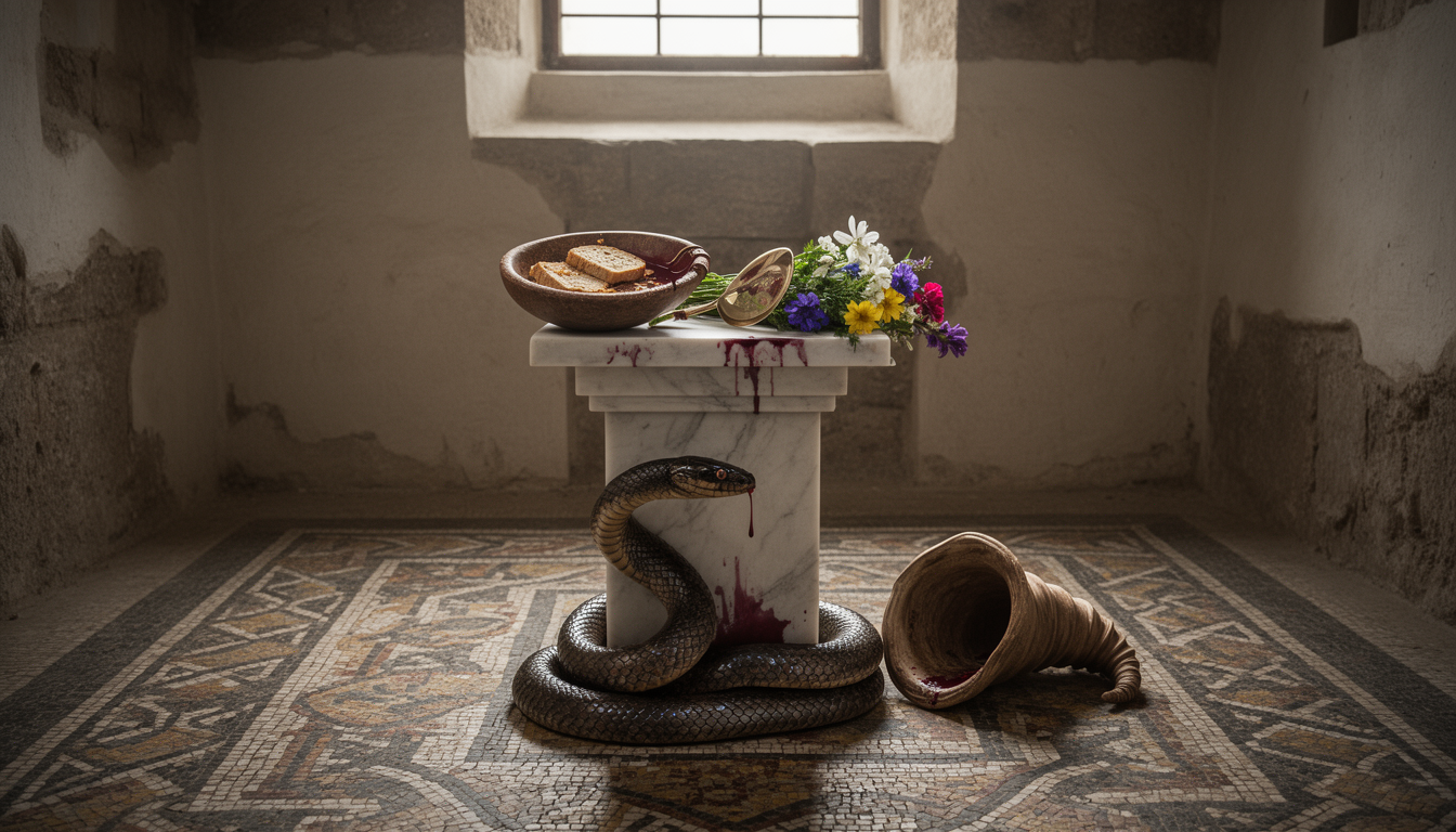 Сцена из обычного дня выглядела примерно так. Мать семейства — именно она чаще всего отвечала за ларарий — надевала на статуэтки венки из цветов или трав. Отец совершал возлияние вина или молока. Дети получали позволение бросить в жаровню несколько зёрен полбы. Всё это занимало несколько минут и не требовало жреца, храма или формульных молитв на латыни. Личный разговор с существом, которое знает тебя по имени.